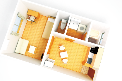個人用のキッチン・トイレ・シャワールーム完備の完全プライベートルーム(1K/2DK)